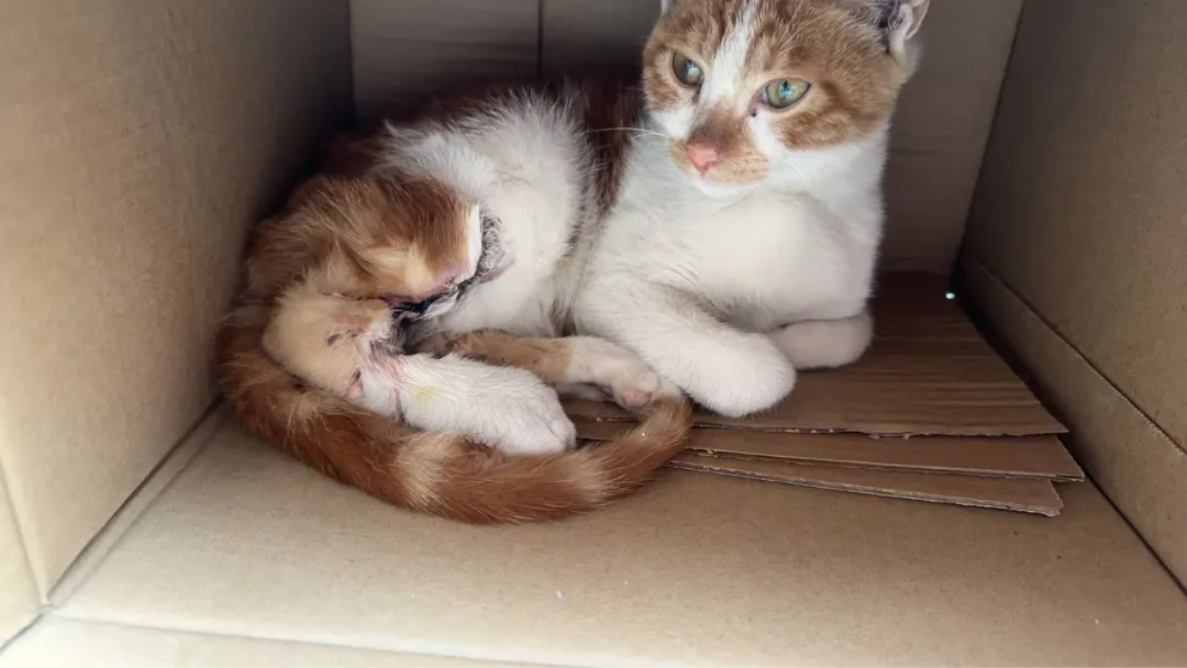 Gu Yi ist eine verletzte orange-weiße Katze, die wir am 29. Oktober 2024 gerettet haben.